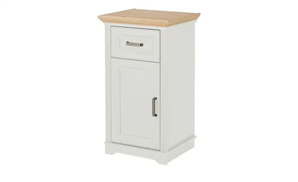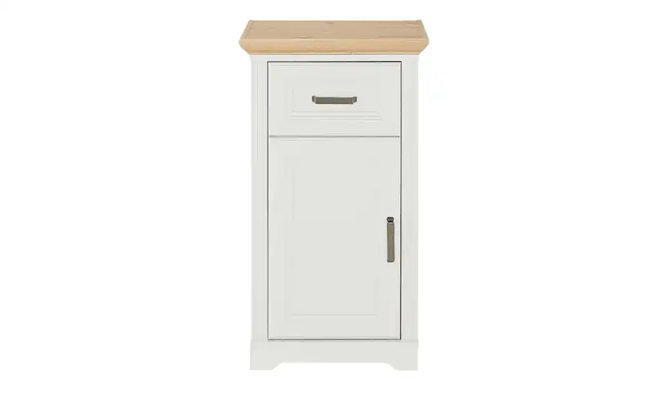 Dieser Badschrank überzeugt mit seinem attraktiven Landhausstil. Das Schubfach und die Tür sind mit einer Kassettenoptik versehen und betonen den Stil gekonnt. Die Abdeckplatte aus authentischer Asteichen-Nachbildung verleiht dem Badschrank einen natürlichen Touch. Verstauen Sie Badzubehör im Schubfach oder den beiden blickdichten Fächern.