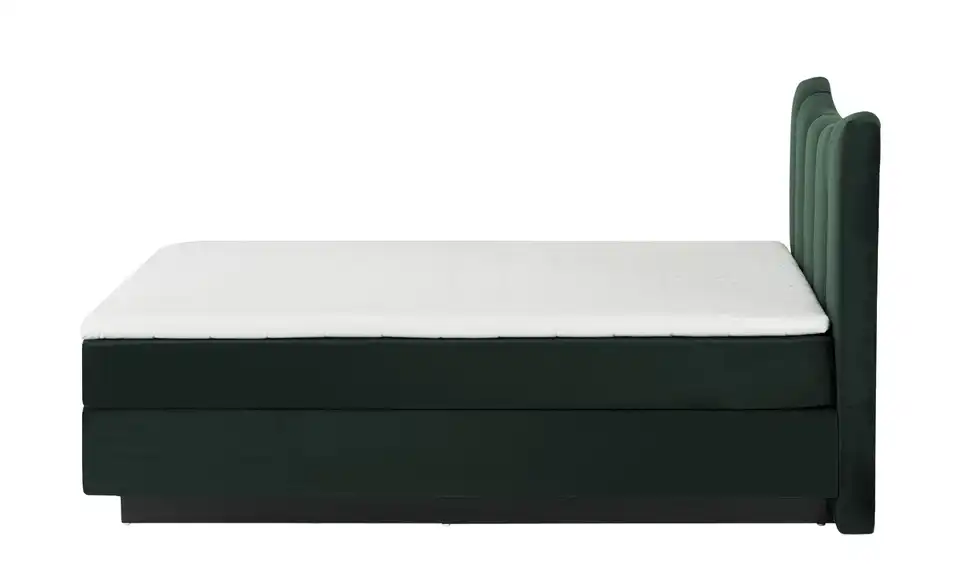 Dicke, weiche Polster laden zum Entspannen ein: Beim Boxspringbett Dalur wirkt das längs gesteppte, geschwungene Kopfteil gemütlich und einladend. Zusammen mit dem samtig weichen Bezug bekommt das Bett einen eleganten Touch. Durch die Kombination aus Tonnentaschenfederkern, Bonnellfederkern und dem viscoelastischen Kern wird das Boxspringbett Dalur auch höchsten Komfort-Ansprüchen gerecht. Um sich Ihrem persönlichen Liegeempfinden noch besser anzupassen, stehen Ihnen verschiedene Matratzen-Härtegrade zur Verfügung. Wählen Sie ganz einfach den passenden Härtegrad für sich und genießen Sie erholsame Nächte. Übrigens: Ein durchgehender Topper mit abnehmbarem Bezug ist im Lieferumfang enthalten. Sie können ihn problemlos bei bis zu 60 °C waschen.