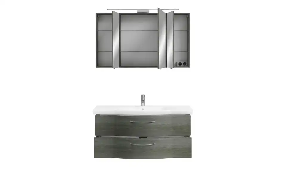 - Bestehend ausSpiegelschrank (BHT ca. 120 x 70 x 17 cm)Waschtischunterschrank (BHT ca. 115 x 49 x 48,1 cm)Keramik-Waschtisch (BHT ca. 122 x 6 x 51,5 cm)