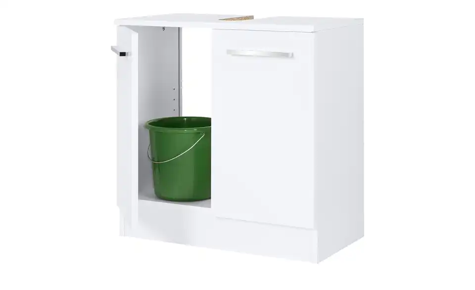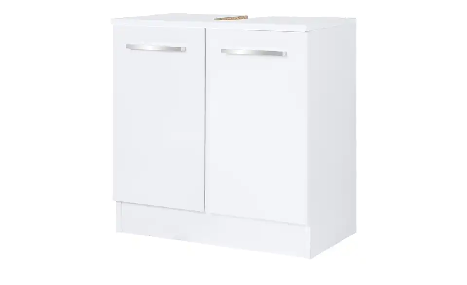 Lassen Sie den Platz unter dem Waschbecken nicht ungenutzt. Der Waschbeckenunterschrank Tegeler See hat Stauraum hinter den beiden Drehtüren. Diesen können Sie gut für Hygieneartikel und Putzmittel nutzen. Die Abdeckplatte hat einen Ausschnitt für das Abflussrohr. Tegeler See ist strahlend weiß. Die beiden Türen haben einen leichten Glanz.