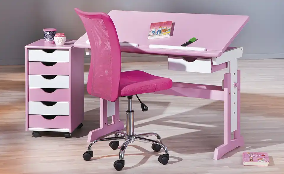 Mit diesem Drehstuhl sitzt Ihr Nachwuchs beim Erledigen der Hausaufgaben komfortabel. Der moderne Drehstuhl besitzt eine luftdurchlässige, leicht gebogene Rückenlehne, welche den Rücken stützt. Die gepolsterte Sitzfläche ist von 44 auf 54 Zentimeter höhenverstellbar und sowohl für frisch eingeschulte Kinder und ältere Schulkinder geeignet. Dank der leichtgängigen Universalrollen ist der Drehstuhl auch auf Teppichböden mobil.