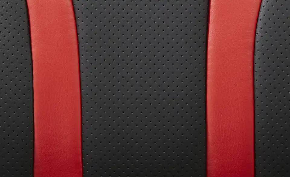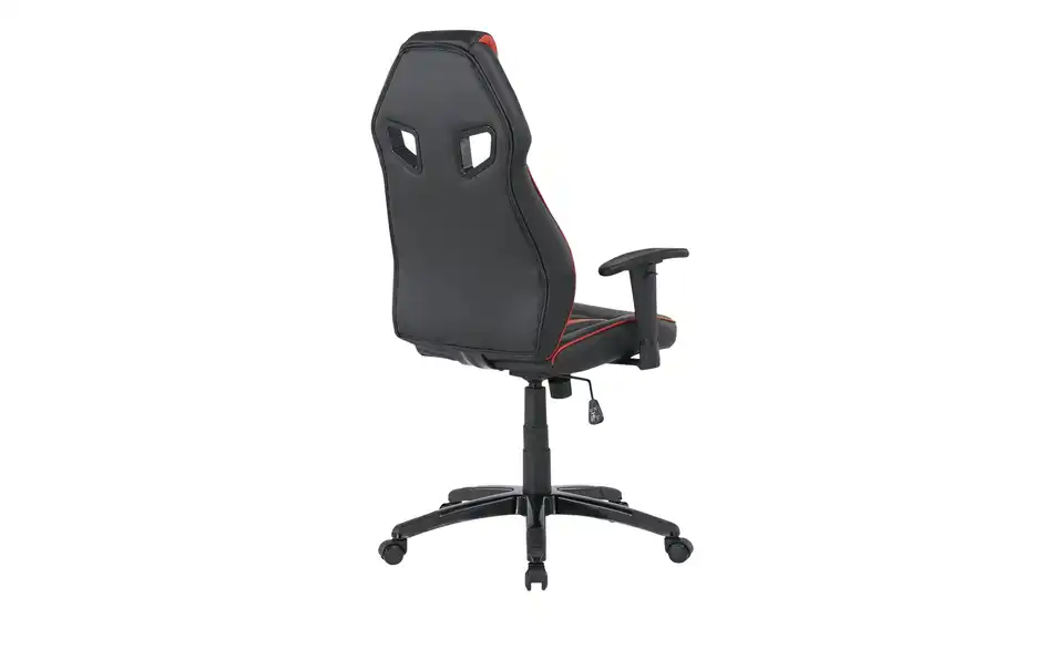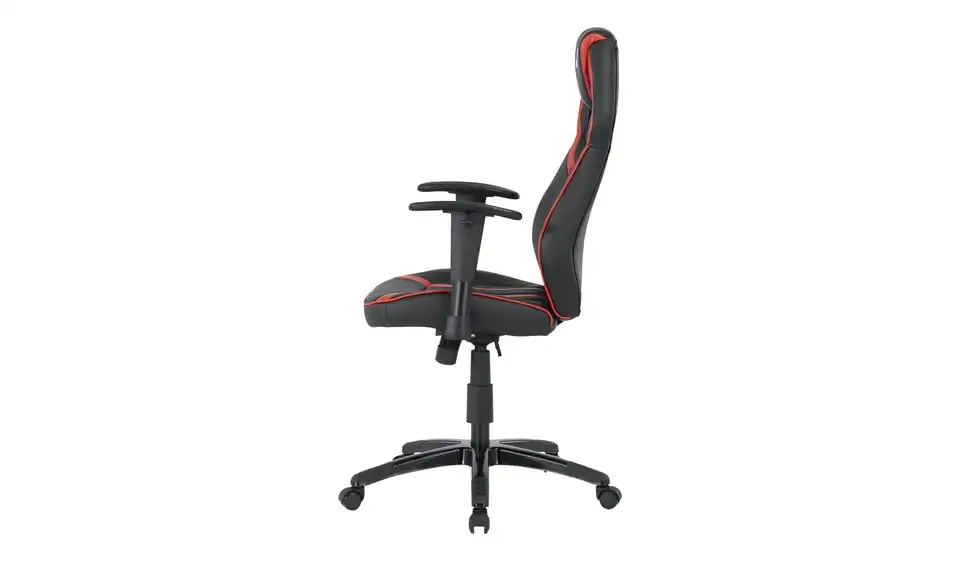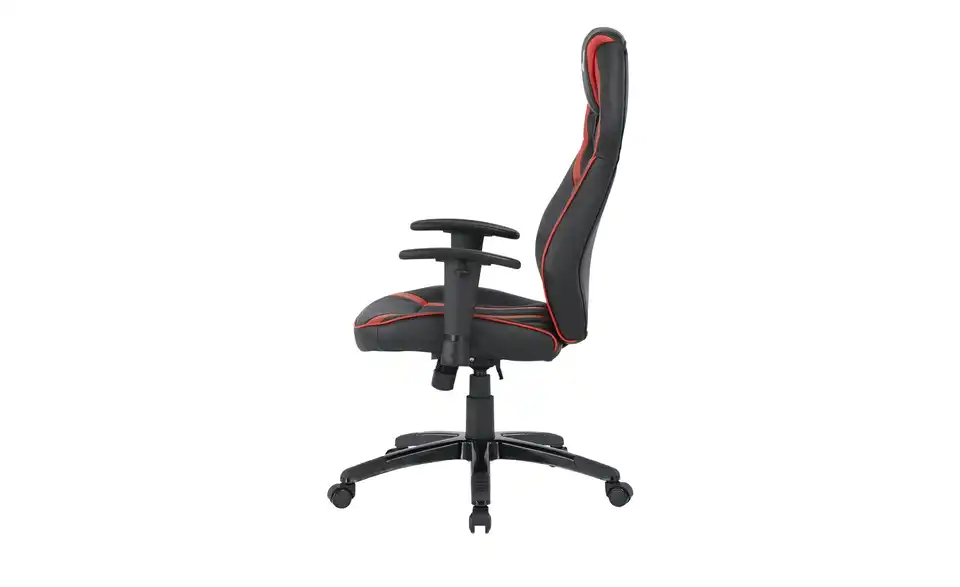 Bei diesem Drehstuhl trifft sportliches Design auf Ergonomie. Der schwarze Kunstlederbezug wird durch rote Highlights akzentuiert und betont das Design gekonnt. Der dick gepolsterte, ergonomische Stuhl ist drehbar, bis 120 Kilogramm belastbar und mit verschiedenen Verstellmöglichkeiten ausgestattet. So bietet er den nötigen Komfort für lange Arbeitstage oder Gaming-Sessions.