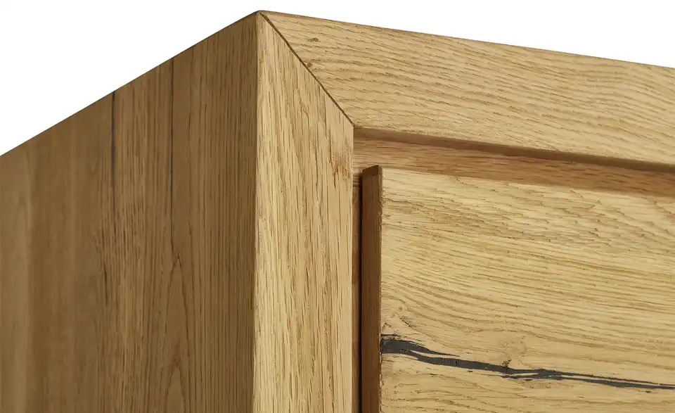 - Mehr zu MaterialKorpus und Front aus Tischlerplatte furniert in Eiche lackiertTischlerplatte Vollholz-Platte mit zwei Schichten aus Eichenfurnier und einer mittleren Schicht aus Kiefer-Massivholz-Leisten