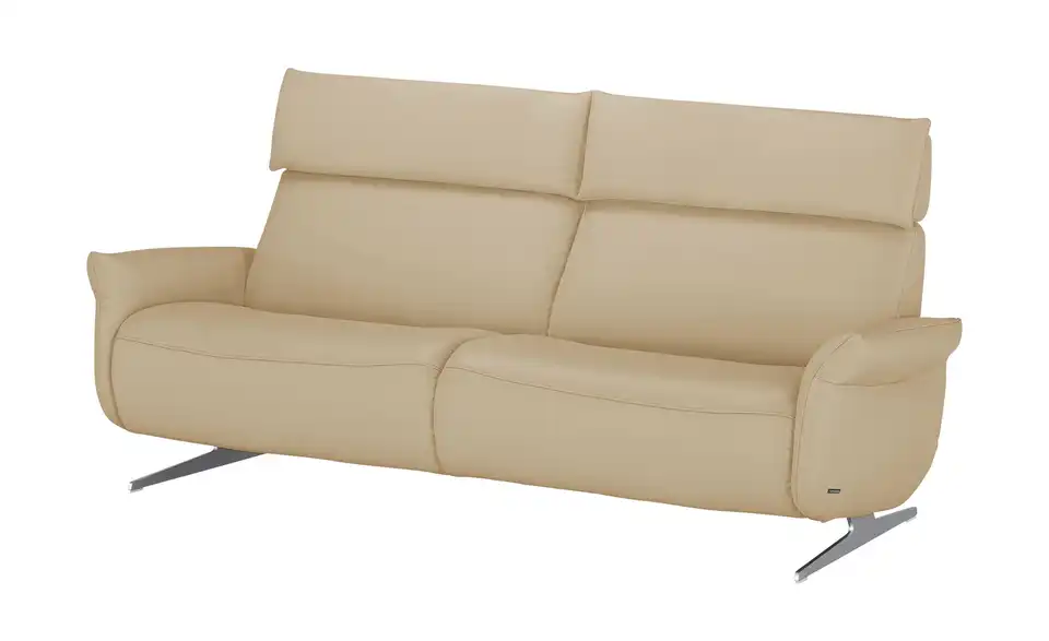Moderne Schwertkufen aus gebürstetem Edelstahl tragen diesen komfortablen Dreisitzer der Marke himolla. Dicke Polsterbereiche und ein hochwertiger Echtlederbezug sorgen für ein außerordentlich gutes Sitzgefühl. Die verwendete Federkernpolsterung erhöht den Komfort zusätzlich. Platzieren Sie das Sofa frei im Raum und machen Sie es sich gemütlich. Verstellen Sie dazu ganz einfach die Kopfstützen mit nur einem Handgriff. Unser Tipp: Kombinieren Sie den Dreisitzer mit dem gleichnamigen 2,5-Sitzer, um eine attraktive Sitzgruppe zu erschaffen. Polster gefertigt im bayrischen Taufkirchen: Von Menschen für Menschen. Die hochwertigen Funktionsmöbel der Marke himolla besitzen durchdachte Verstellfunktionen und begleiten Sie ein ganzes Möbelleben lang.