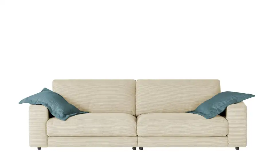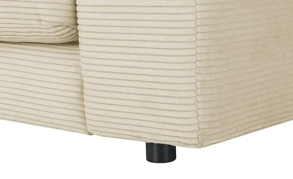 Dieses Designer-Cordsofa von Jette Home verbindet Minimalismus und Komfort. Der Trendstoff Cord umspannt das ganze Sofa, sodass Sie es bei Bedarf auch mittig im Raum platzieren können. Extra breite Armlehnen und dick gepolsterte Sitzkissen laden zum Entspannen ein und bieten beste Voraussetzungen für lange Filmeabende und Mehr. Dank der modernen, zurückhaltenden Farben können Sie das Sofa problemlos mit eigenen Dekodecken und -Kissen kombinieren.