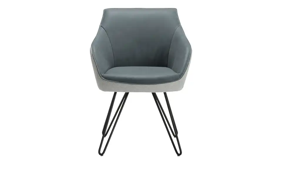 Dieser Markenstuhl der Serie Dining System 4 passt dank seiner schwarzen, filigranen Haarnadelfüße perfekt zu allen Tischen mit schwarzen Metallfüßen oder -Gestellen. Die Kombination aus Büffelleder auf der Innenseite und pflegeleichtem Flachgewebe in Filz-Optik auf der Außenseite gibt dem Armlehnstuhl ein attraktives, modernes Aussehen. Die beiden verschiedenen Bezugsmaterialien unterscheiden sich haptisch und farblich voneinander und sind durch eine dekorative Kontrastnaht miteinander verbunden. Unikate gefertigt in Bayern: Die Marke KOINOR steht für einzigartige Komfortfunktionen und individuelles Design. Unter Verwendung hochwertigster Materialien entstehen Möbel mit Vorzeigecharakter.