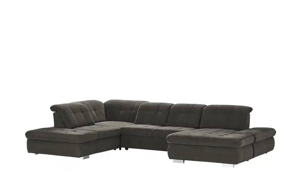Diese Wohnlandschaft ist genau der richtige Platz zum Ausruhen nach einem harten Arbeitstag. Das Modell Spencer wird dank der Sitztiefenverstellung zu einem absoluten Komfort-Highlight und macht in seinem urbanen Stil eine optimale Figur. Für das maximale Wohlfühlerlebnis verfügt das Sofa der Marke Lounge Collection über eine bequeme Polsterung aus Kaltschaum. Der Rücken des Sitzmöbels ist echt bespannt, damit es ohne Probleme mitten im Raum platziert werden kann. Bei dem Material des Rahmens handelt es sich um Metall. Das Modell Spencer hat eine Bettfunktion, wird durch die stattliche Sitztiefe von 79 cm zu einer Entspannungsinsel und nimmt 382 x 102 x 260 cm ein. Auf diesem hochwertigen und praktischen Sofa kann man es sich nach einem langen Tag bequem machen.