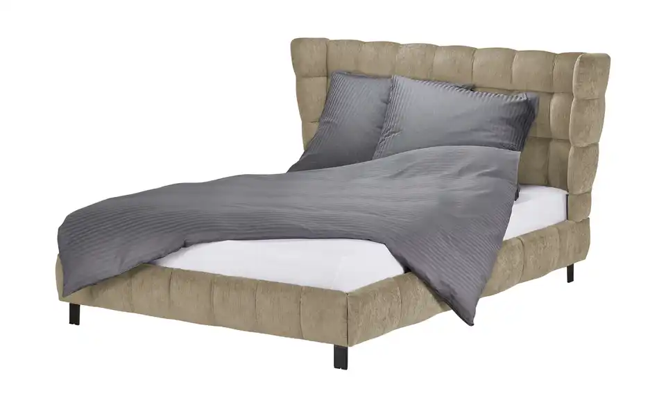 Das Polsterbettgestell Caterham ist ein Eyecatcher für Ihr Schlafzimmer. Es verfügt über ein außergewöhnliches Design. Vor allem das hohe Kopfteil fällt sofort auf: Es ist mit Ohren ausgestattet, wie man sie von Ohrensesseln kennt. Neben den optischen Vorzügen sind die Ohren auch praktisch. So können Sie sich noch besser ankuscheln. Super, wenn sie im Bett lesen oder fernsehen möchten. Kopfteil und Bettgestell sind weich gepolstert. Der melierte Bezug ist rechteckig gesteppt. Caterham verfügt über eine große Liegefläche, die Sie mit Matratze und Lattenrost nach Wahl ergänzen können. Sie erhalten sie hier im Shop.