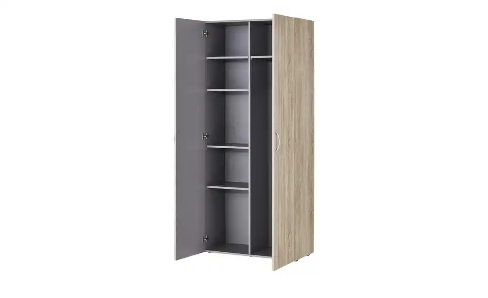 Der Schrank Multiraumkonzept heißt nicht nur so, sondern lässt sich flexibel als Mehrzweckschrank nutzen. Darin können Wäsche, Schuhe oder auch Putzmittel und vieles andere untergebracht werden. Auf der linken Seite stehen Ihnen fünf, rechts zwei Fächer zur Verfügung. Multiraumkonzept fügt sich durch sein zeitloses Design gut in vorhandene Einrichtungen ein.