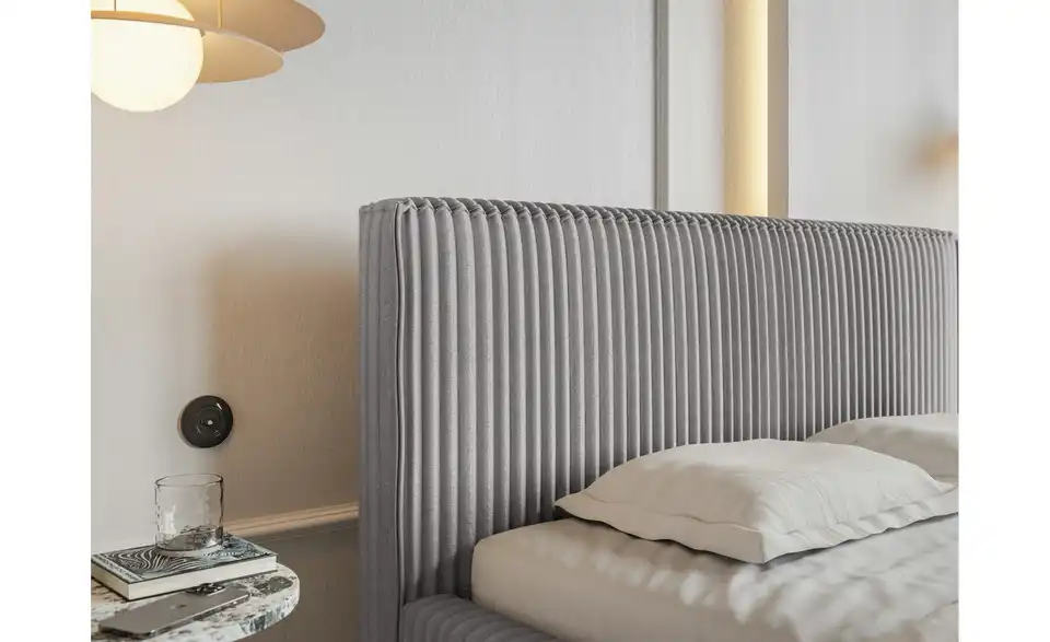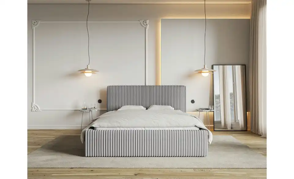 Das Polsterbett Tilio ist eine perfekte Wahl für alle, die minimalistische Looks, aber maximale Funktionalität lieben. Dank seines einfachen, geradlinigen Designs und des rundum gepolsterten Bettrahmens sieht es super schick und einladend aus und schafft dabei eine saubere, beruhigende Atmosphäre im Schlafzimmer. Der Breitcord-Bezug mit grober Rippenstruktur sorgt für ein angenehmes Wärmegefühl und verleiht dem Raum ein gemütliches Flair. Das hohe, kuschelige Betthaupt lädt zum Anlehnen und Entspannen ein, auch beim Lesen oder Fernsehen. Auch in Sachen Stauraum lässt Tilio keine Wünsche offen: Ihre Bettwäsche und Co., aber auch Wintermäntel oder Hobbyartikel lassen sich platzsparend und unauffällig im zweigeteilten Bettkasten unter dem hochklappbaren Lattenrost lagern. Eine praktische Trennwand teilt den Bettkasten in zwei Bereiche und sorgt somit für eine optimierte, organisierte Aufbewahrung.