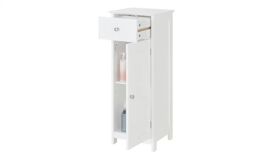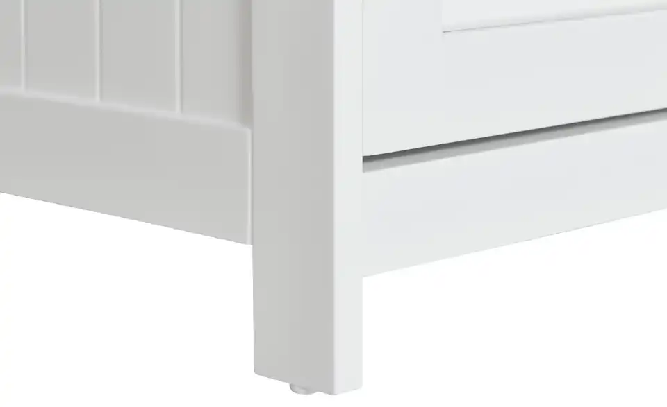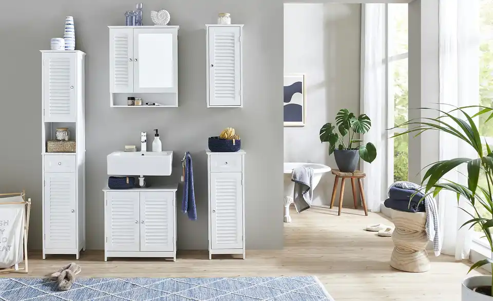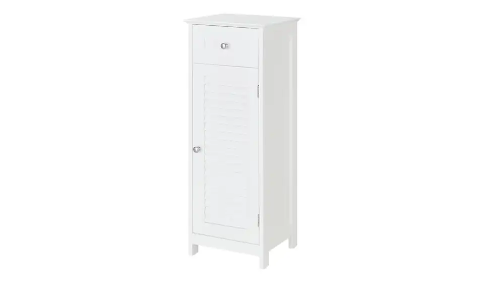 Zaubern Sie eine maritime Landhausnote in Ihrem Bad – mit dem Bad-Unterschrank Königsee. Er ist komplett weiß lackiert. Und hat ein mattes Oberflächenfinish. Die Tür hat eine auffällige Lamellenoptik. Der Schrank bietet vielseitigen Stauraum. Ganz oben befindet sich eine Schublade. Darunter hat der Schrank zwei geräumige Fächer hinter einer Tür. Den Einlegeboden können Sie in der Höhe verstellen.