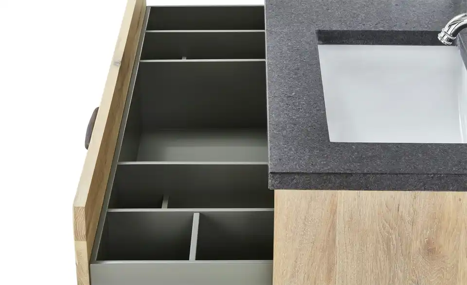 - Lieferumfang / mitgeliefertes ZubehörGranit-WaschtischplatteWaschtischunterschrank 2 Schubkästen2x UnterbauwaschbeckenGranitrandleisteEiche Fußset2x Griff